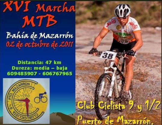 1º- La prueba tendrá su salida el domingo 2 de octubre de 2011 a las 09:30 horas desde la Plaza de las Comunidades Autónomas, junto al paseo Marítimo de Puerto de Mazarron. Se saldrá en grupo de forma controlada durante 3 Km., hasta el Km. 0, a partir de aquí, prueba Libre. Recorrido de 50 Km., entrega de trofeos en línea de meta, Plaza de las Comunidades, Paseo Marítimo de Puerto de Mazarrón.