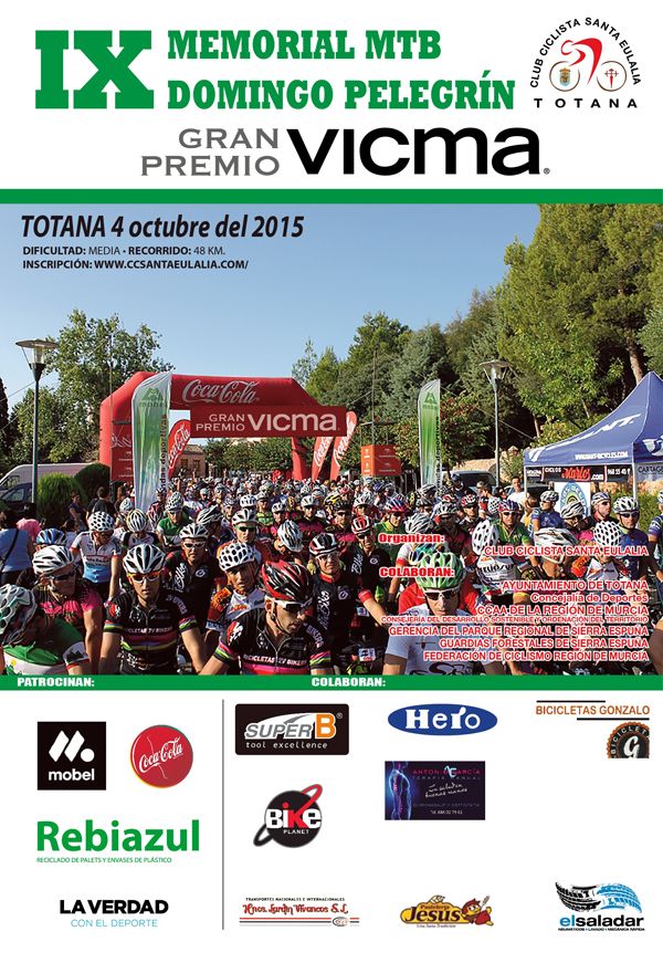 El Club Ciclista Santa Eulalia de Totana (Murcia) os invita a participar en la IX edición del Memorial MTB Domingo Pelegrín que tendrá lugar el próximo día 4/10/2015 en Totana (La Santa).